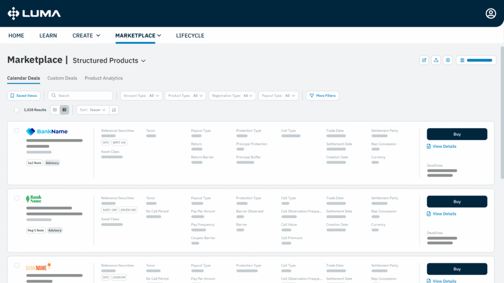Luma is purpose-built for the diverse needs of today’s financial ecosystem. Whether you’re sourcing products, managing client portfolios, or scaling distribution networks, our platform helps professionals and institutions drive better outcomes across the US, Canada, EMEA, and LATAM.